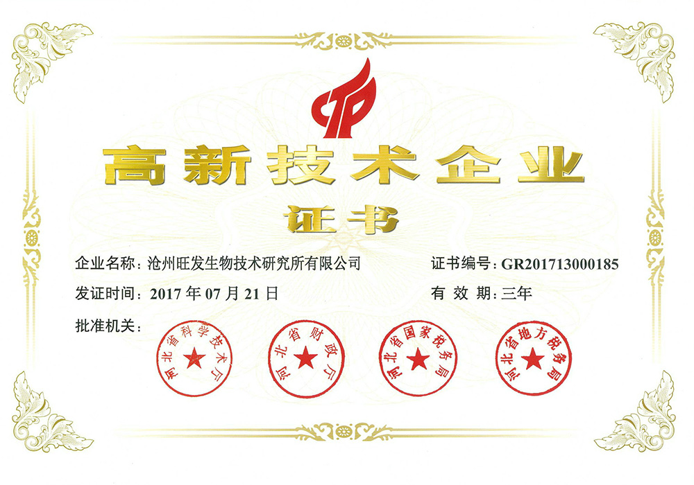 滄州旺發(fā)生物技術(shù)研究所有限公司創(chuàng)立于1993年,是集研發(fā)、生產(chǎn)、銷售于一體的微生態(tài)制劑生產(chǎn)“高新技術(shù)企業(yè)”、“國(guó)家知識(shí)產(chǎn)權(quán)優(yōu)勢(shì)企業(yè)”、“河北省農(nóng)業(yè)產(chǎn)業(yè)化重點(diǎn)龍頭企業(yè)”、“河北省創(chuàng)新型中小企業(yè)”、“河北省專精特新中小企業(yè)”,目前,公司注冊(cè)資金1360萬(wàn)元,生產(chǎn)占地80畝,擁有液、固態(tài)結(jié)合全自動(dòng)發(fā)酵生產(chǎn)線及標(biāo)準(zhǔn)化全自動(dòng)液態(tài)發(fā)酵、噴霧干燥生產(chǎn)線。